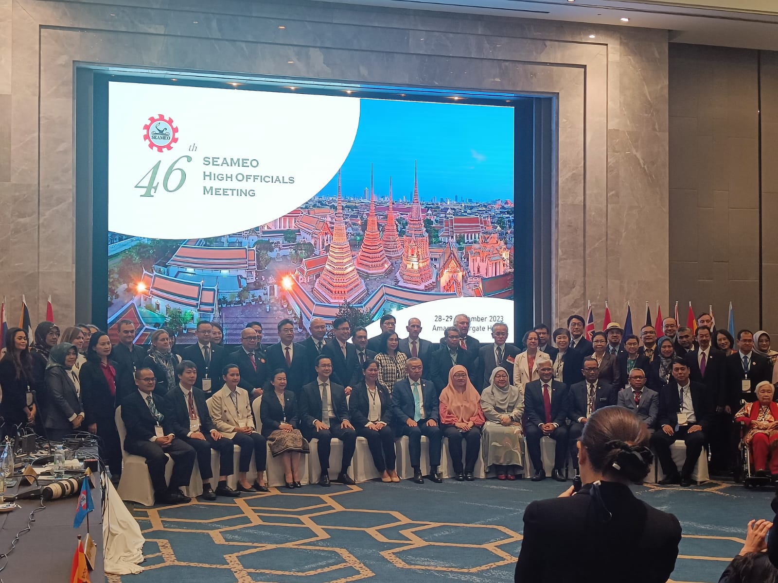 On 28-30 November 2023, SEAMEO RECFON participated in the 46th SEAMEO High Officials Meeting (HOM) and represented by Dr. Zainun Misbah (Acting Director SEAMEO RECFON) and Ms. AAS. Indriani Oka (Manager of Knowledge Management and Policy Support Unit). This event was hosted by SEAMEO Secretariat in Amari Hotel Bangkok, Thailand, and attended by high officials representatives from 10 Ministry of Education from the SEAMEO Member Countries and 26 SEAMEO Centre, as well as SEAMEO Associate Member Countries and SEAMEO Affiliate Members.