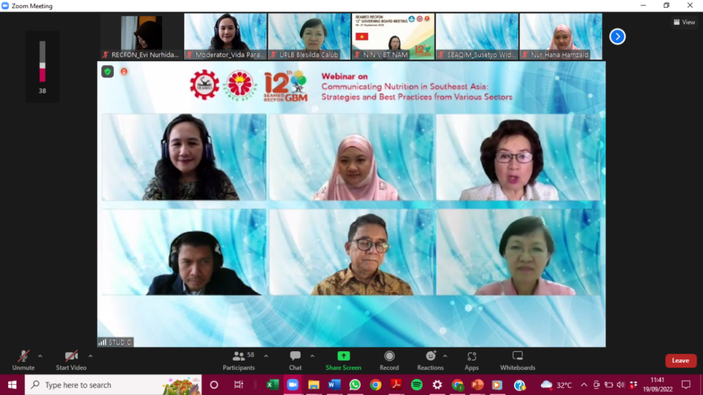 SEAMEO RECFON Webinar Stresses Importance of Nutrition Communication in Southeast Asia