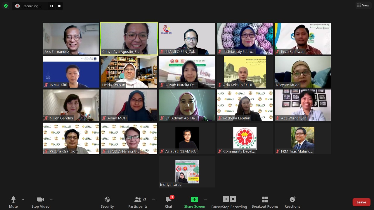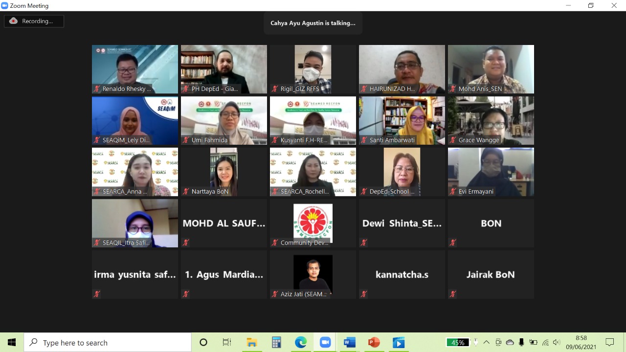 Members of the Southeast Asian and Indonesian School-Based Nutrition Promotion (SBNP) Working Groups adopted the operating guidelines drafted by SEAMEO RECFON and formulated their plans of activities for the next four years during a virtual workshop held on 8-9 July 2021.