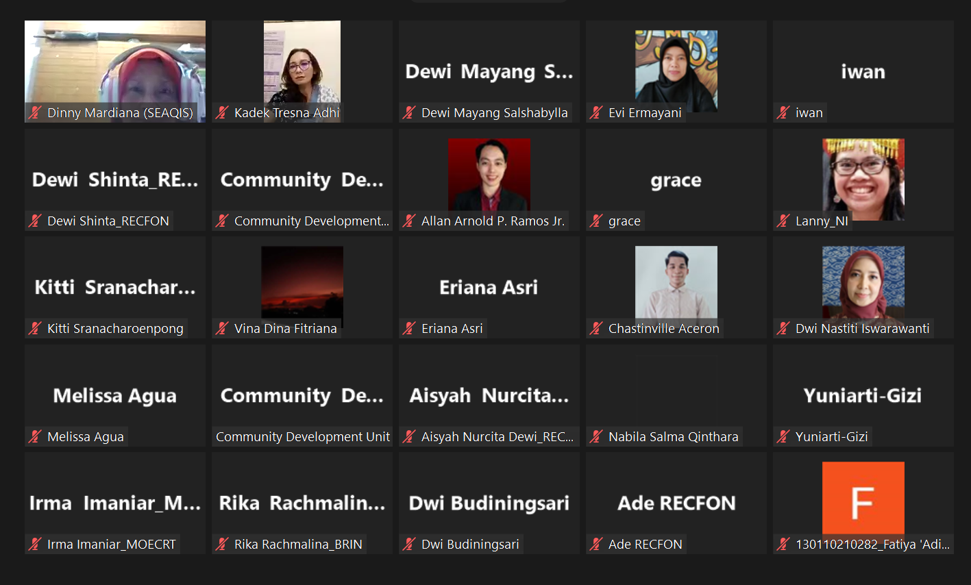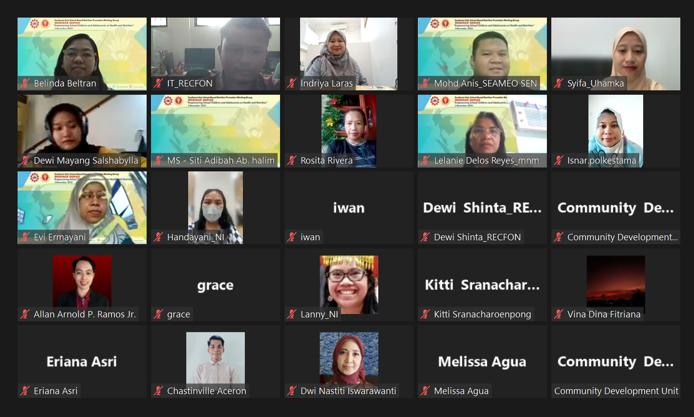 Prior to the workshop, a pre-event webinar on “Empowering School Children and Adolescents on Health and Nutrition” was delivered as a learning forum to update on current initiatives on School Based Nutrition Promotion. The webinar speakers were Mrs. Eny Kurnia Sari, STP (GAIN Indonesia) and Dr. Tin Afifah (BRIN Indonesia), which was moderated by Dr. Luh Ade Wiradnyani (SEAMEO RECFON).