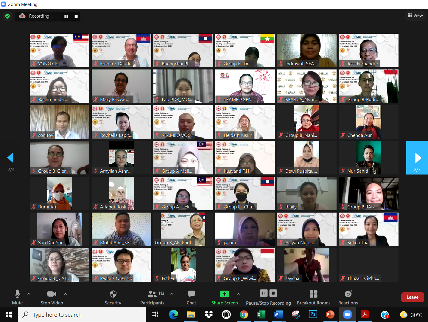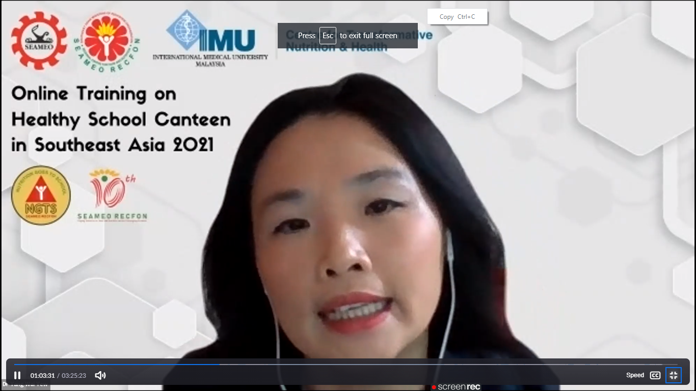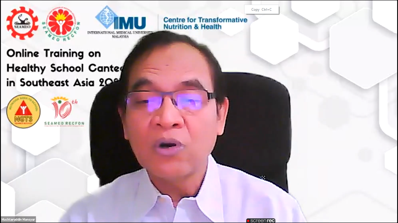 SEAMEO RECFON and the Centre for Transformative Nutrition and Health of the International Medical University (IMU) of Malaysia launched the first Online Training on Healthy School Canteen in Southeast Asia on 12 July 2021 for school heads, teachers and canteen operators in the region.