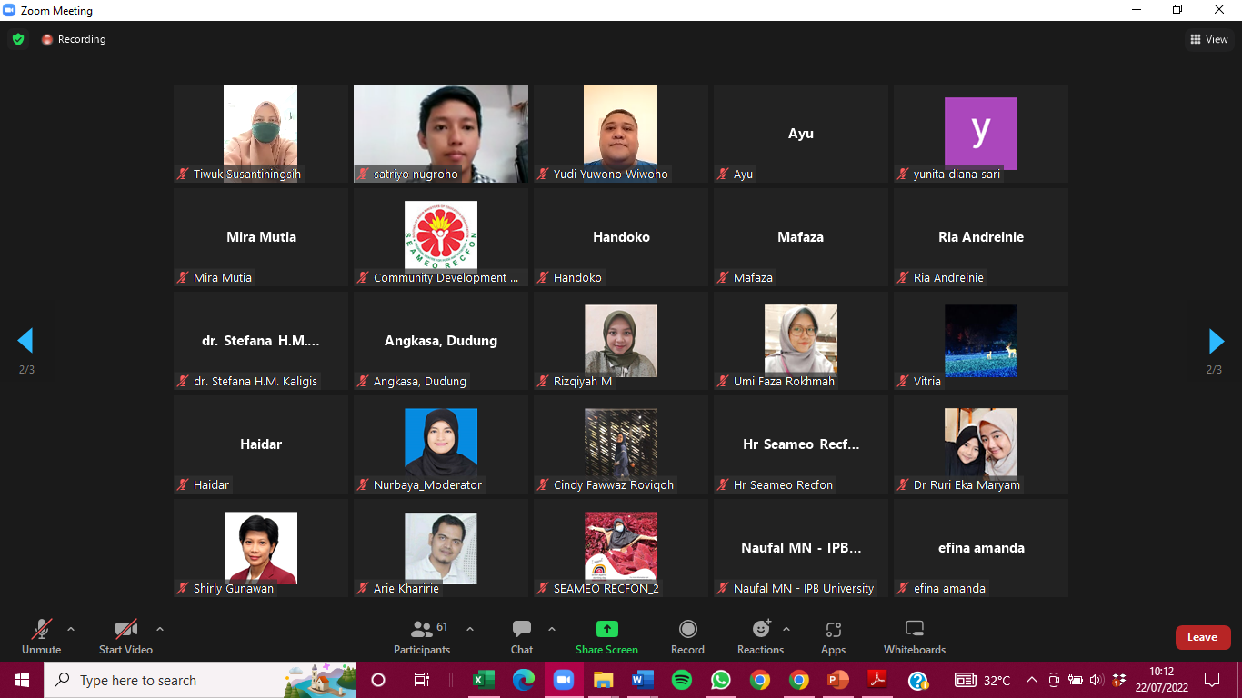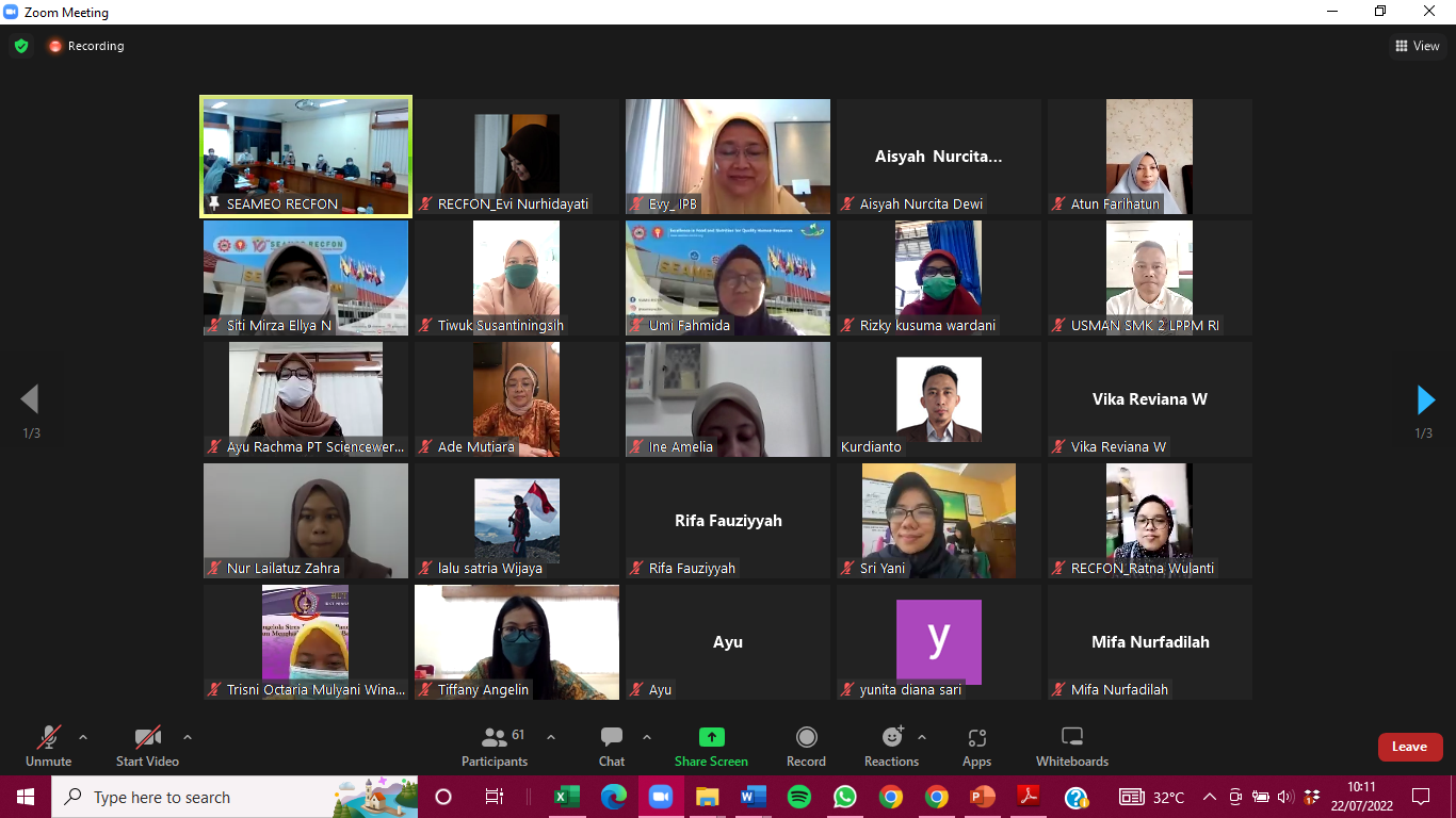 As a way of introducing the new laboratory service to its regular clients, staff and potential customers, the Centre conducted a socialization through an introductory webinar about it on July 22, 2022 which was attended by 60 participants. Furthermore, seven (7) staffs related to the laboratory of SEAMEO RECFON have equipped with training of its analysis and QA/QC competencies.