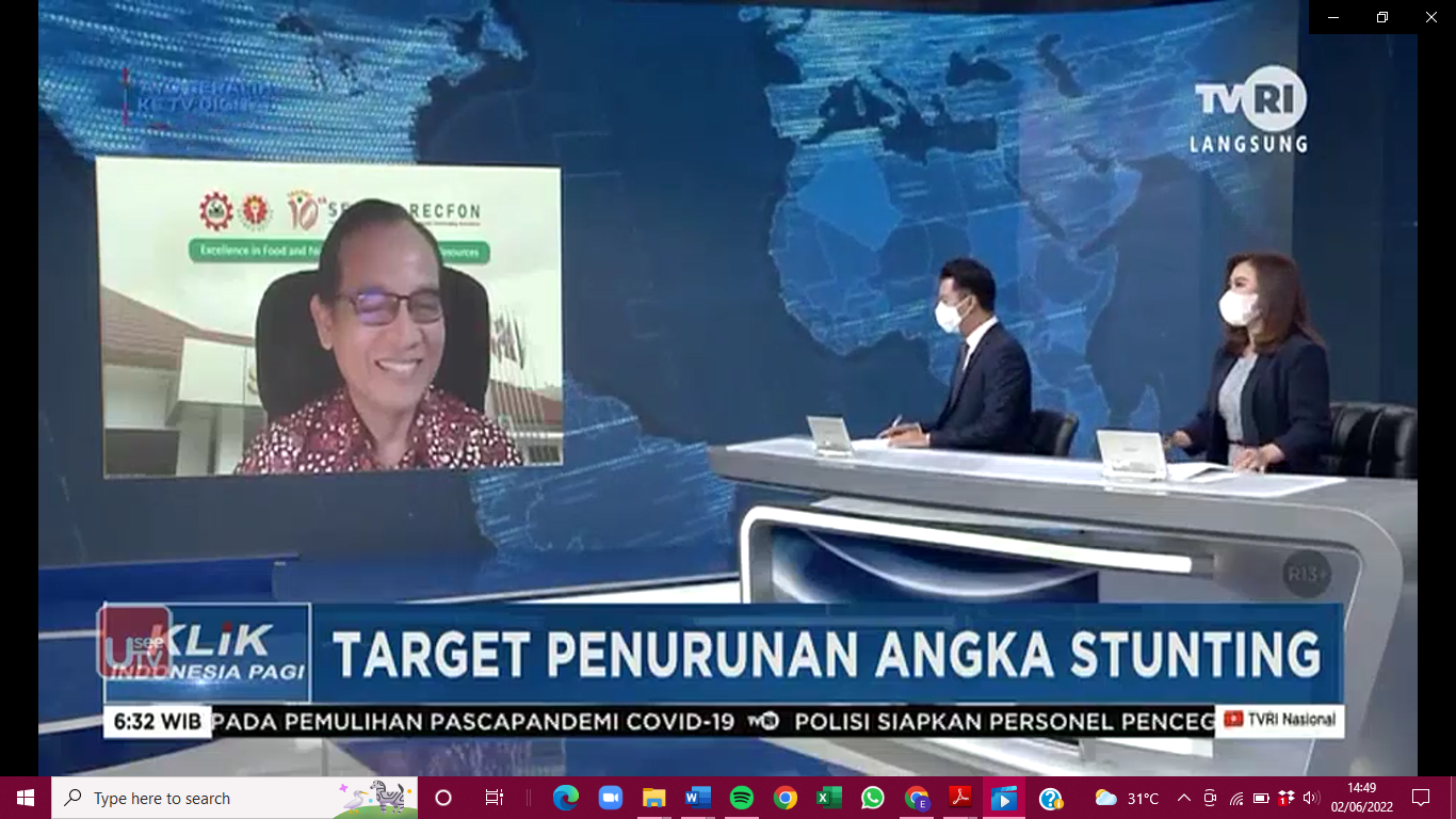 In line with the GoI’s commitment, Prof. Muchtaruddin Mansyur, Director of The Southeast Asian Ministers of Education – Regional Center for Food and Nutrition (SEAMEO RECFON), on Klik Indonesia Pagi TVRI (14/5), stated that stunting reduction target 3% by 2024 is an optimism and challenge for the GoI which is necessary to be supported by all stakeholders through the convergence effort in the national and sub-national level. Lesson learned from other countries also has proven that stunting reduction target 2% per year could be achieved.