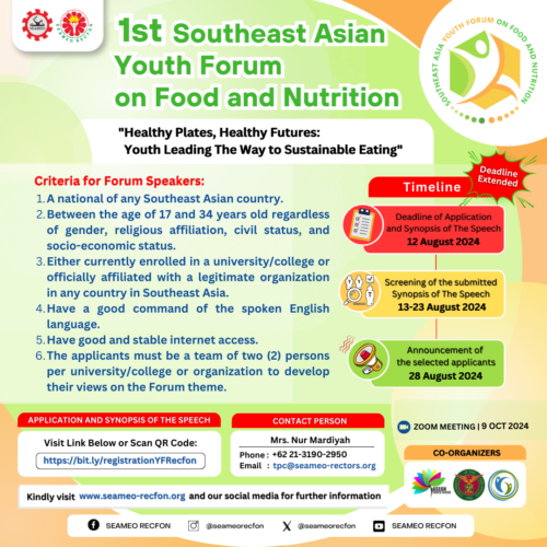 Kindly visit https://www.seameo-recfon.org/youth-forum/ and our social media for further information