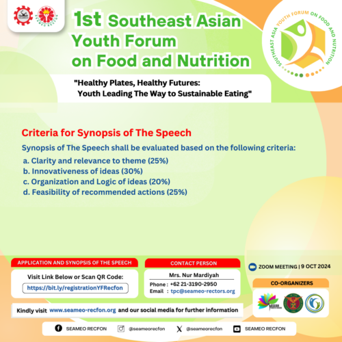 Guidelines on Application and Selection of Speakers for SEAMEO RECFON’s Southeast Asia Youth Forum on Food and Nutrition